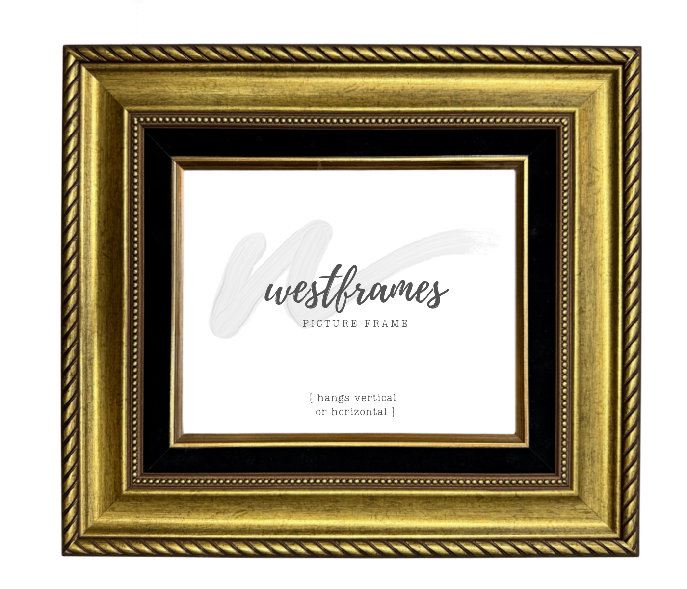Add a luxurious touch to your photos, artwork, or prints with this 3.25-inch wide gold polystyrene picture frame with a wood black linen liner. The classic rope border and delicate beaded trim combine vintage charm with modern elegance, making it perfect for home, office, or gallery displays. Available in custom sizes to perfectly fit your project.